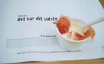 紙皿を持った兄ちゃんが、「食べてみる?なら、ここにサインしてくれなきゃペナルティになるよ。」